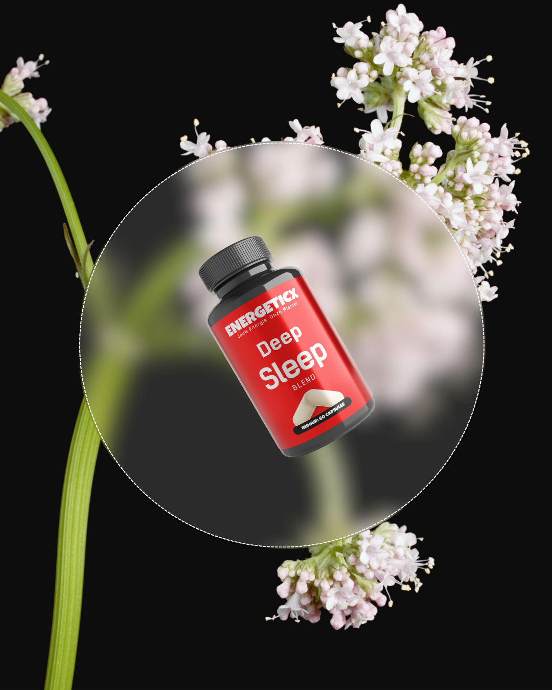 Deep Sleep Blend contains a blend of natural ingredients such as Melissa, Lavender, Valerian and L-Tryptophan. These ingredients are known for their relaxing properties, which can help support a healthy sleep cycle and a sense of calm.